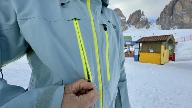 Columbia didn't skimp on practical features in this updated shell. The PU-coated chest pocket zippers are sleek and water-resistant. The two-way zipper up front makes bathroom breaks (or adjusting a harness) a lot easier. Zippered hand pockets had enough room for snacks, a chapstick, or even my compact touring skins.
