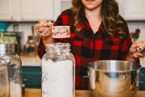 • Flour – Be sure to use the dipping method for flour (also called the “spoon and sweep”). This is where you make sure your flour is stirred well (not packed down) and spoon it into your measuring cup. Then, using the back of a butter knife (or a flat utensil), sweep the knife over the measuring cup to level out the flour. If you want to use home-milled flour, be sure to read through this post on https://melissaknorris.com/podcast/best-flours-for-baking-flour-guide-101/">how to choose the best flour for baking.