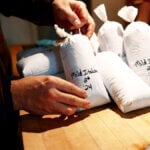 • Label meat storage bags with their contents and the date, stuff the sausage mixture into the bags, and secure them with bag-sealing tape.