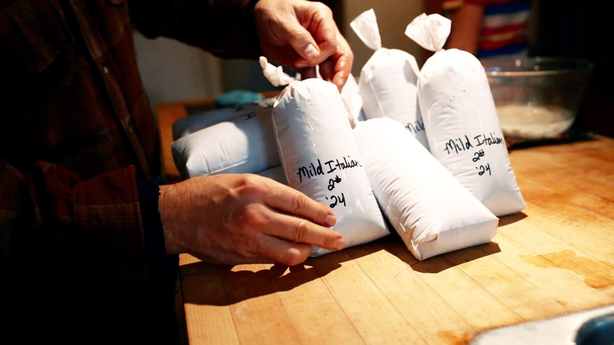 https://homesteadingfamily.com/wp-content/uploads/2025/01/Mild-Italian-Sausage-Bag_HF-1024x576.jpg" alt="Packages of ground pork sausage, labeled and ready for the freezer." class="wp-image-40280" srcset="https://homesteadingfamily.com/wp-content/uploads/2025/01/Mild-Italian-Sausage-Bag_HF-1024x576.jpg 1024w, https://homesteadingfamily.com/wp-content/uploads/2025/01/Mild-Italian-Sausage-Bag_HF-300x169.jpg 300w, https://homesteadingfamily.com/wp-content/uploads/2025/01/Mild-Italian-Sausage-Bag_HF-768x432.jpg 768w, https://homesteadingfamily.com/wp-content/uploads/2025/01/Mild-Italian-Sausage-Bag_HF-480x270.jpg 480w, https://homesteadingfamily.com/wp-content/uploads/2025/01/Mild-Italian-Sausage-Bag_HF.jpg 1200w" sizes="(max-width: 1024px) 100vw, 1024px" data-pin-media="https://homesteadingfamily.com/wp-content/uploads/2025/01/Mild-Italian-Sausage-Bag_HF.jpg">