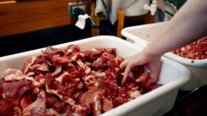 https://homesteadingfamily.com/wp-content/uploads/2025/01/Pork-Pieces_HF-1024x576.jpg" alt="Pork scraps in a food bucket ready to be made into sausage." class="wp-image-40278" srcset="https://homesteadingfamily.com/wp-content/uploads/2025/01/Pork-Pieces_HF-1024x576.jpg 1024w, https://homesteadingfamily.com/wp-content/uploads/2025/01/Pork-Pieces_HF-300x169.jpg 300w, https://homesteadingfamily.com/wp-content/uploads/2025/01/Pork-Pieces_HF-768x432.jpg 768w, https://homesteadingfamily.com/wp-content/uploads/2025/01/Pork-Pieces_HF-480x270.jpg 480w, https://homesteadingfamily.com/wp-content/uploads/2025/01/Pork-Pieces_HF.jpg 1200w" sizes="(max-width: 1024px) 100vw, 1024px" data-pin-media="https://homesteadingfamily.com/wp-content/uploads/2025/01/Pork-Pieces_HF.jpg">