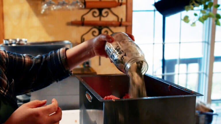 • Sausage Casings  – If you want to make sausage links, we recommend natural hog casings like these https://homesteadingfamily.com/sausage-casings" target="_blank" rel="noreferrer noopener nofollow">sausage casings. Make sure the sausage casing size matches the size links you want to make. Watch the video for the most straightforward example of how to prepare your sausage casings.