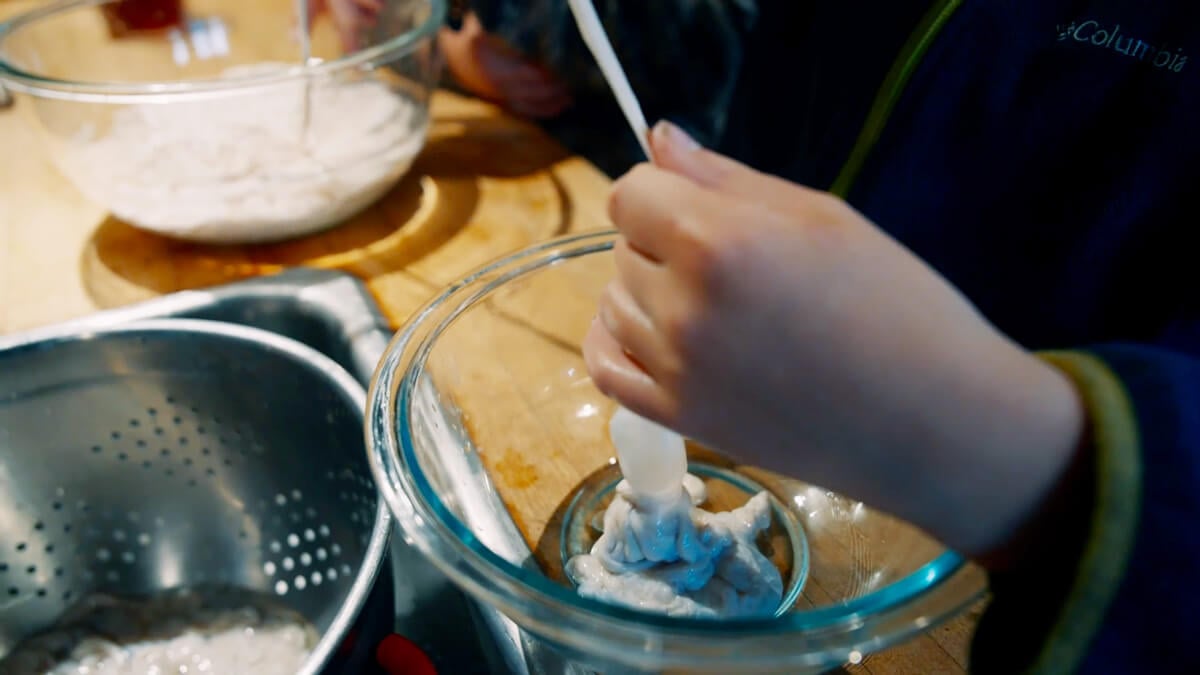 • Once the entire casing is filled, tie off the other end and begin twisting into desired-sized links.