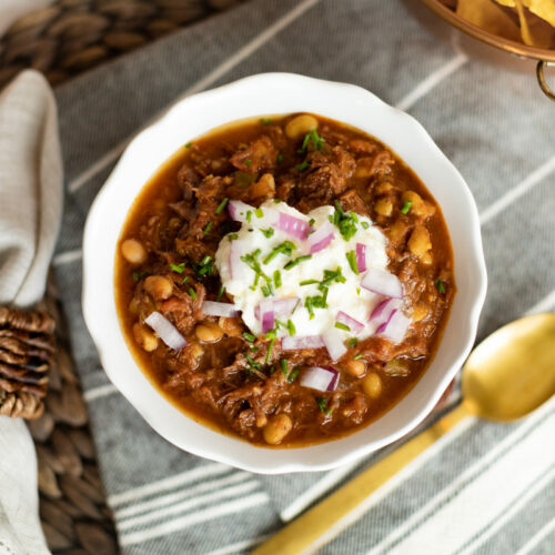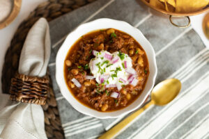 https://melissaknorris.com/wp-content/uploads/2025/03/Bowl-of-Chili-with-Onions-and-Sour-Cream_MKN-1024x683.jpg" alt="Homemade chili in a white bowl topped with sour cream, onions and cilantro." class="wp-image-50662" srcset="https://melissaknorris.com/wp-content/uploads/2025/03/Bowl-of-Chili-with-Onions-and-Sour-Cream_MKN-300x200.jpg 300w, https://melissaknorris.com/wp-content/uploads/2025/03/Bowl-of-Chili-with-Onions-and-Sour-Cream_MKN-600x400.jpg 600w, https://melissaknorris.com/wp-content/uploads/2025/03/Bowl-of-Chili-with-Onions-and-Sour-Cream_MKN-768x512.jpg 768w, https://melissaknorris.com/wp-content/uploads/2025/03/Bowl-of-Chili-with-Onions-and-Sour-Cream_MKN-1024x683.jpg 1024w, https://melissaknorris.com/wp-content/uploads/2025/03/Bowl-of-Chili-with-Onions-and-Sour-Cream_MKN.jpg 1200w" sizes="auto, (max-width: 1024px) 100vw, 1024px" />