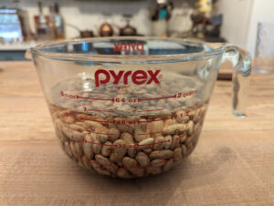 • Place beans in a bowl, cover with 2-3 inches of water, and soak overnight.