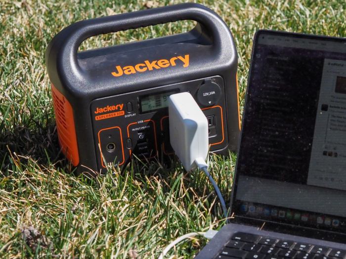 Jackery’s Explorer 300 power station is the https://gearjunkie.com/technology/portable-power/jackery-explorer-300-review?utm_source=google&utm_medium=h5d&utm_campaign=h_gj_00148&gad_source=1&gad_campaignid=22481002451&gbraid=0AAAAA9zBTKV4uFdhDNNeM9A9jejRYUyCQ&gclid=Cj0KCQjwjo7DBhCrARIsACWauSkfHo5X13tEGuUgMvevWUiuGZiDRPZyQvFzsRhXLmcPaeKxNJ2cJJcaAn1lEALw_wcB">perfect choice for those wanting to stay plugged in while in the great outdoors. Its two 100V, 300W pure sine-wave outlets quickly charge laptops, phones, and other personal electronic devices. And with a weight of just 7 pounds, it’s the rare power station that isn’t a chore to carry around.